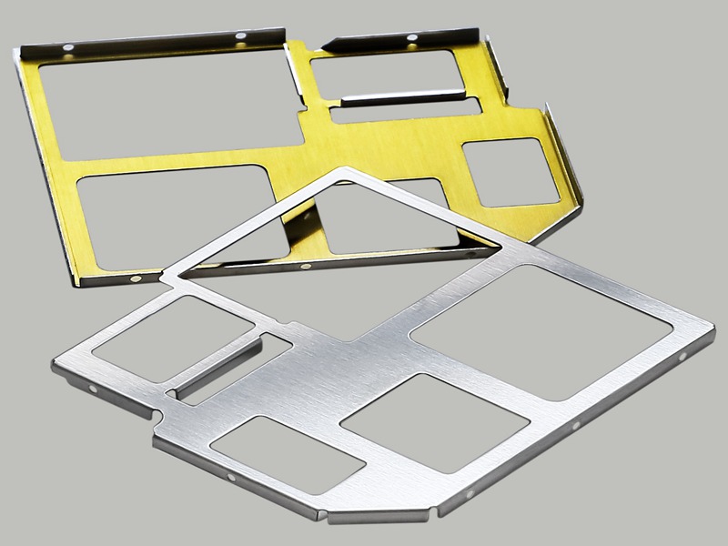 傳統的金屬屏蔽罩- -般采用易于彎折、拉伸加工的洋白銅作為屏蔽框材料,因為洋白銅在焊接、散熱方面性能較好,可直接焊接在PCB板上,而不銹鋼、鍍鋅鋼帶一般用來作為屏蔽蓋。金屬屏蔽罩可分為固定式和可拆卸式,固定式屏蔽罩結構簡單,易于生產以及自動化組裝,但一旦焊接在PCB板上,不便于后期拆卸檢查維修;可拆卸式屏蔽罩是將支架和蓋子通過扣式方式固定,方便后續的拆卸測試和維修整改。